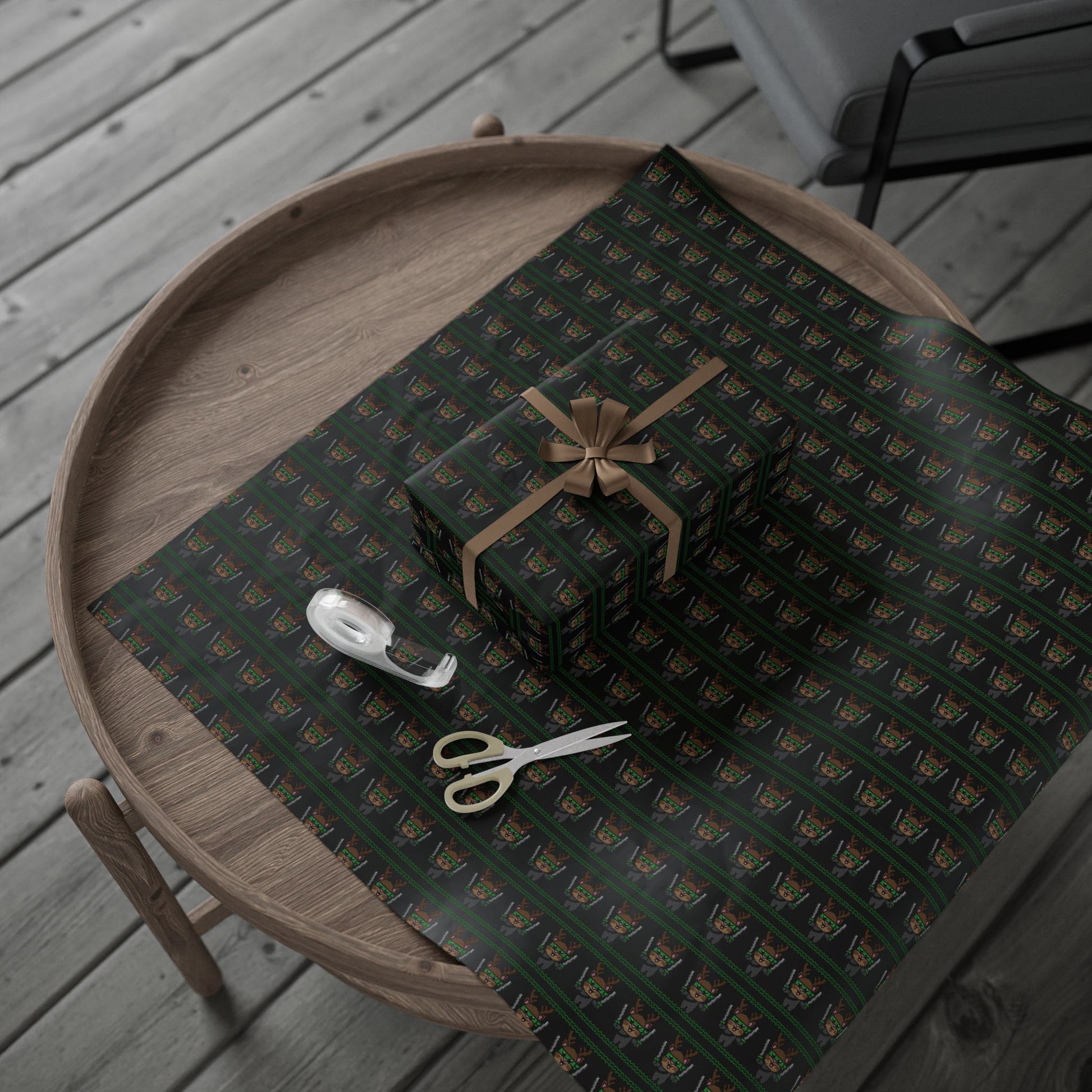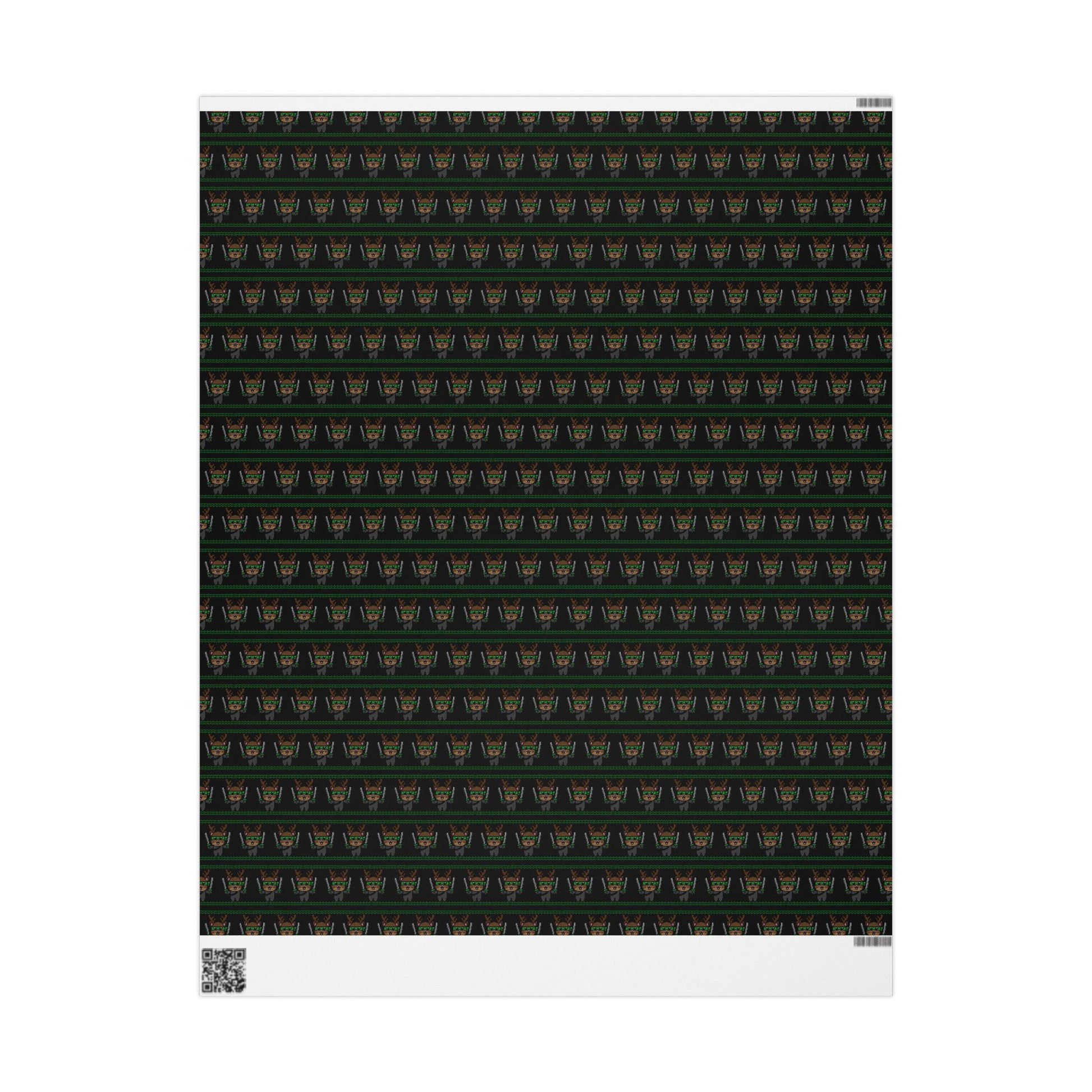 A luxe roll of festive wrapping paper printed on 90gsm fine art paper, with dense, high-definition artwork and a choice of glossy or smooth matte finish. Available in three generous lengths, the single-sided print lays smoothly and wraps cleanly around boxes, bottles, and odd-shaped gifts. Small white borders with a discreet barcode and QR code appear at the edges from the print process.